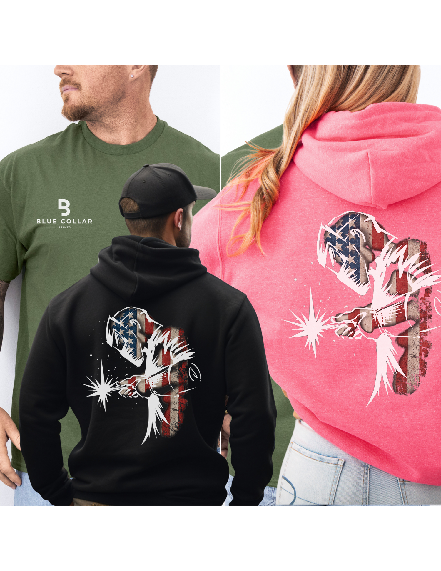 American Patriotic Welder Flag Hoodie OR T-Shirt