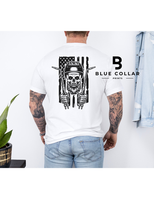 American Patriotic Bearded Skull Welder Hoodie OR T-Shirt