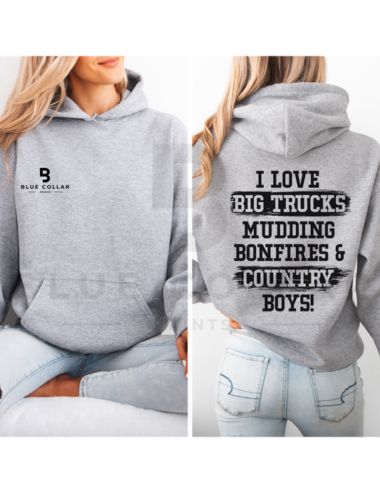 I Love Big Trucks and Country BOYS Hoodie OR T-Shirt