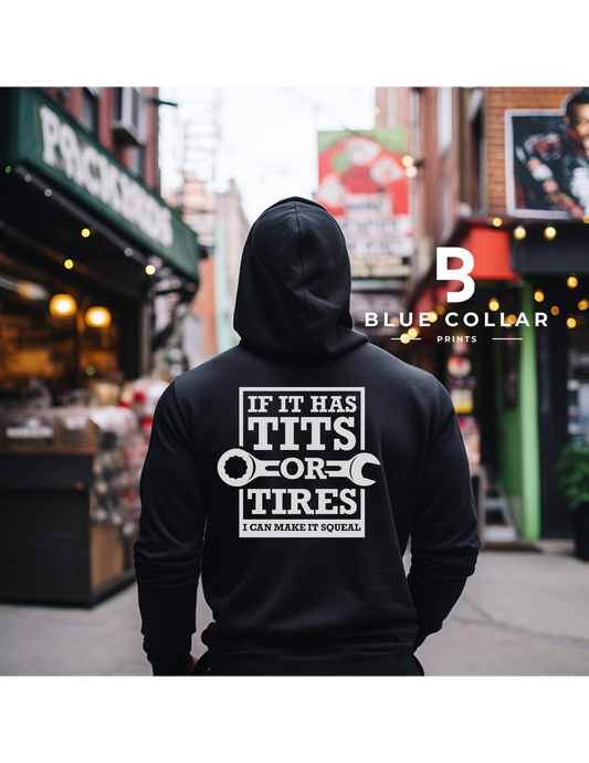 Mechanic Car Guy - If It has Tits or Tires I can make it Squeal Hoodie OR T-Shirt