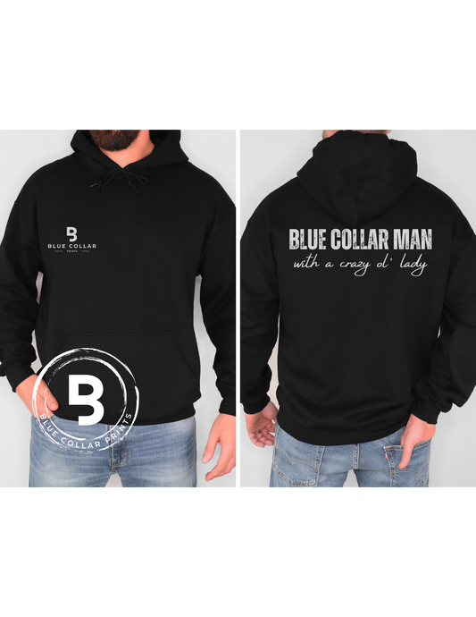 Blue Collar Man With A Crazy Ol' Lady Hoodie OR T-Shirt